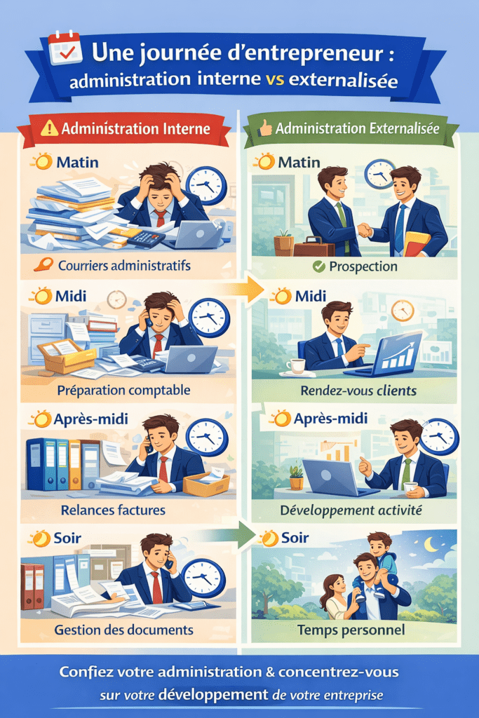 C’est précisément pour cette raison que de nombreux entrepreneurs choisissent aujourd’hui d’externaliser leur administration. Cette organisation permet non seulement de libérer du temps, mais aussi de mieux structurer la gestion quotidienne et d’éviter de nombreux coûts indirects.